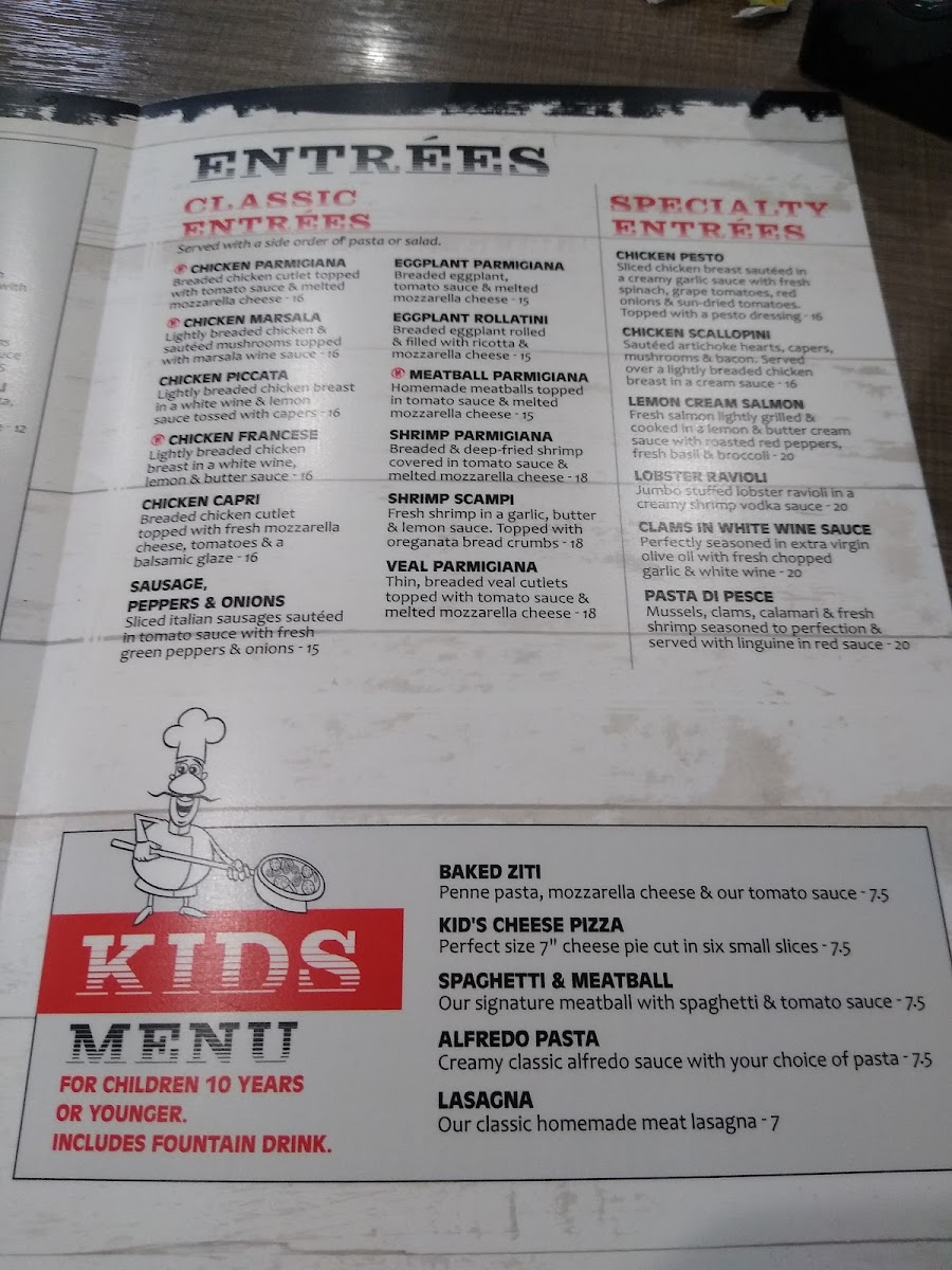 Lightly breaded chicken with capers, mushrooms, artichoke hearts and bacon in Alfredo sauce.