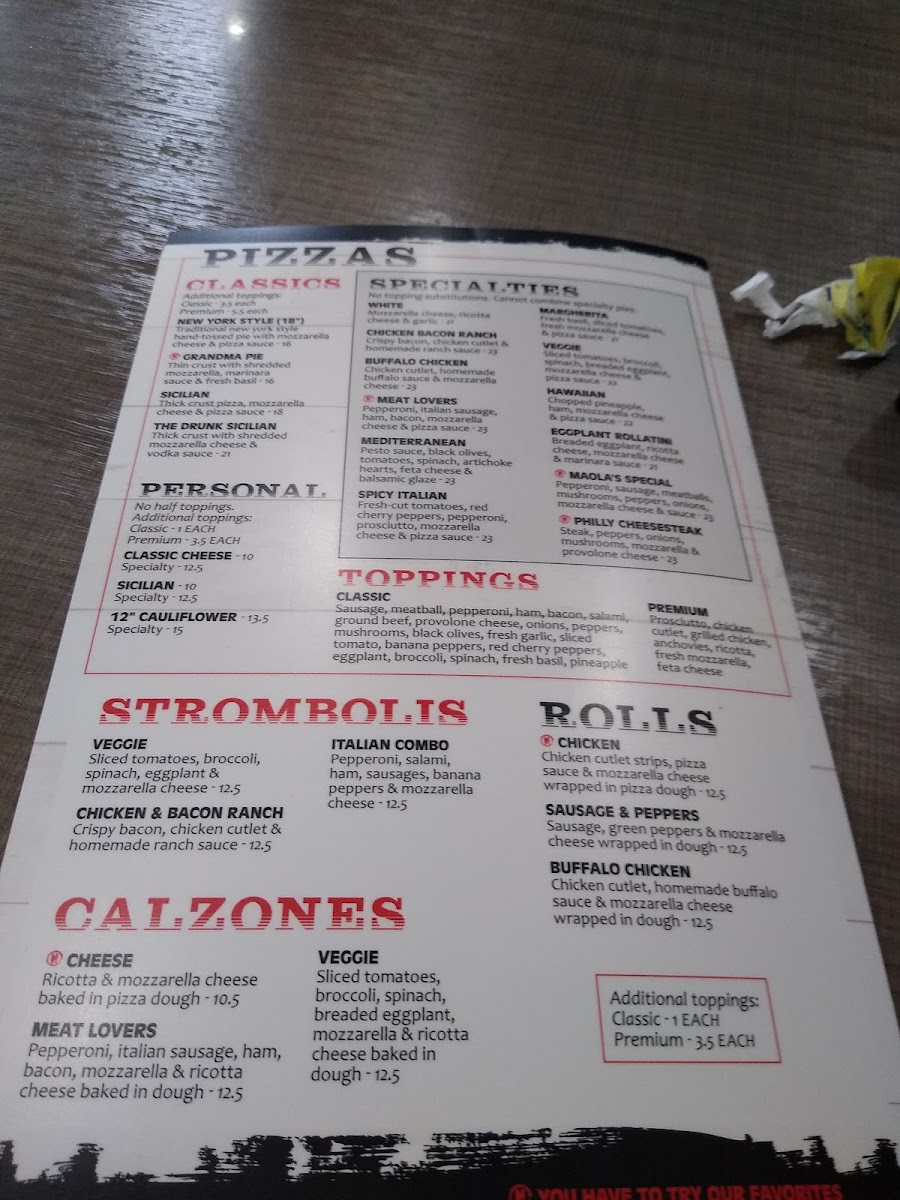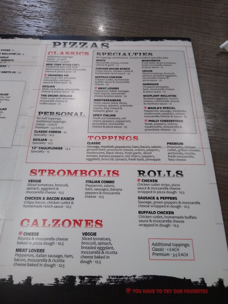 No topping substitutions | Cannot combine specialty pies. Sicilian crust for an additional cost.